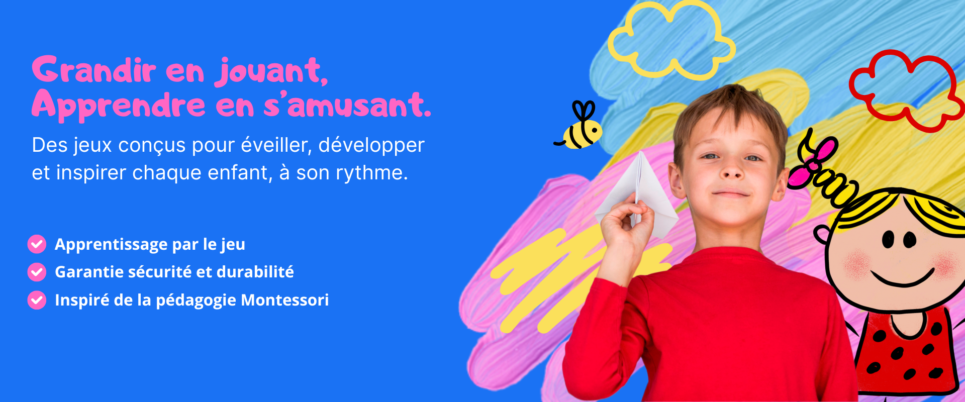 Complétez le plaisir avec notre espace dédié aux jouets éducatifs, jeux de société et loisirs créatifs qui stimulent l'imagination et l'apprentissage. Trouvez tout ce qu'il faut pour les moments de jeu et de la vie quotidienne de vos petits. La qualité au service de l'enfance.